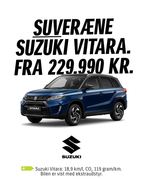 HUSK, SØNDAGSÅBENT FRA KL. 11-14 🚙Suzuki Vitara er et SUV-ikon, der bare bliver bedre for hver generation. Glæd dig til et udstyrsniveau, der både gør den sikker og sjov. Vælg manuelt eller automatgear efter temperament – og AllGrip 4WD, hvis du er ude på noget. Ved almindelig høflig kørsel får du en rækkevidde på op til 880 km på en tankfuld⛽.
